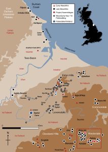What is exciting is that evidence so far suggests a Mesolithic-to-Early Neolithic transitional period around 4000 to 3800 cal BC, with Early Neolithic dating and evidence from Street House Farm on the coast near Loftus. This is the transition from a nomadic hunter-gather-fisher lifestyle lasting over 6000 years since the Ice Age, to the shift to agriculture, ceramics and monument building. We seem to have overlapping AMS radiocarbon dates, between the upland central watersheds and Street House, spanning around 3900 to 3800 BC. Street House has mounting evidence for Neolithic ‘monumental’ funerary remains and, in recent years, complex domestic activity with distinctive flint artefacts and pottery.