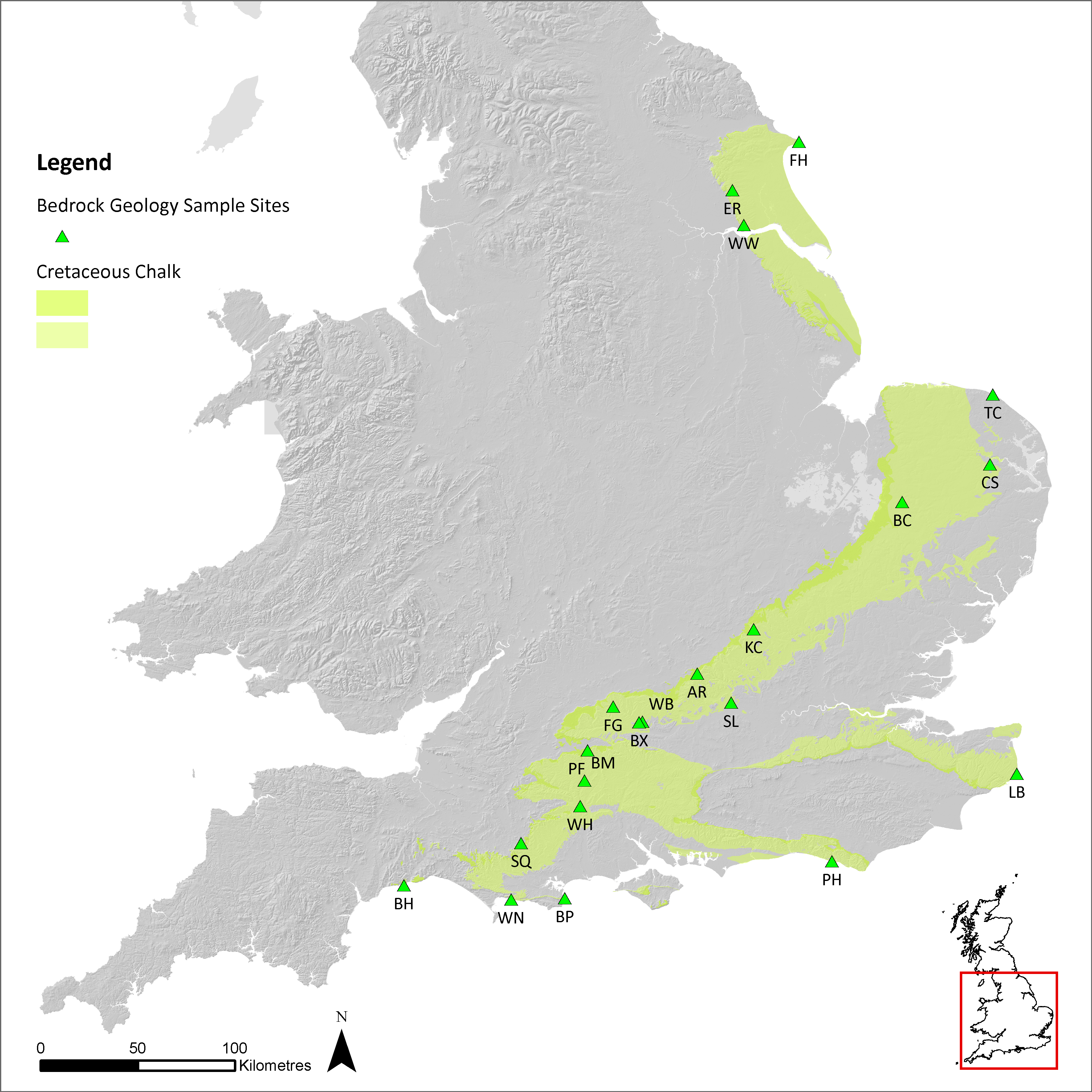 The results were compared to over 1200 analyses of geological samples from 21 bedrock sites from across the Chalk, as well as 14 sites that sampled a range of superficial deposits, such as river terrace gravels and glacial tills, centred on the Severn Valley and Estuary.